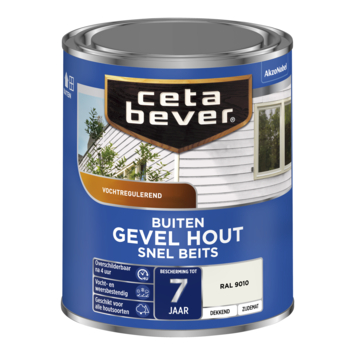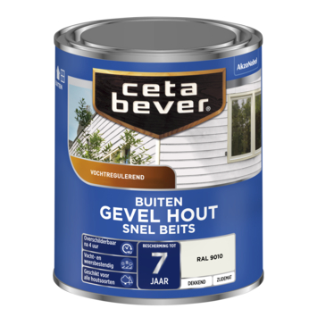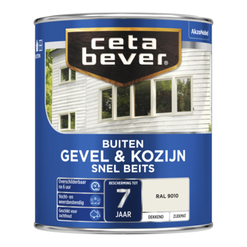CetaBever Snelbeits Gevel & Kozijn zijdemat dekkend RAL 9010 gebroken wit 750 ml is de ideale keuze voor het beschermen van buitenhout. Deze watergedragen beits is geschikt voor zowel kaal als eerder geverfd hout, en zorgt voor langdurige bescherming van je buitenhoutwerk. Het is met name geschikt voor zachthout ofwel niet-maatvast houtwerk, zoals gevelbetimmeringen en rabatdelen. De beits droogt snel, zodat je na vier uur al kunt overschilderen, en houdt je hout tot zeven jaar in goede staat. Je kunt de beits niet alleen in RAL 9010 verkrijgen, maar ook in elke gewenste dekkende kleur laten mengen. Deze beits is vocht- en weerbestendig, waardoor je buitenhout goed beschermd is tegen het wisselende buitenklimaat.