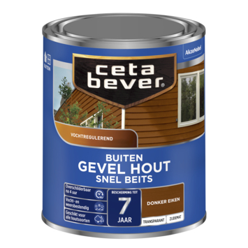 Wil je jouw buitenhout beschermen zonder dat het natuurlijke karakter verloren gaat? CetaBever Snelbeits Gevel & Kozijn zijdemat transparant donker eiken 750 ml is een watergedragen beits die speciaal is ontwikkeld voor zachthout en niet-maatvast houtwerk zoals gevelbetimmeringen en rabatdelen. De beits dringt diep in het hout en biedt een vocht- en weerbestendige bescherming tot wel zeven jaar. Dankzij de snelle droogtijd van vier uur kan je eenvoudig meerdere lagen aanbrengen op één dag. Verkrijgbaar in diverse kant-en-klare tinten én te mengen in elke gewenste transparante kleur. Zo creëer je altijd de perfecte uitstraling voor jouw project.