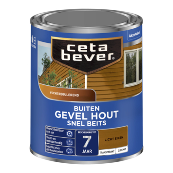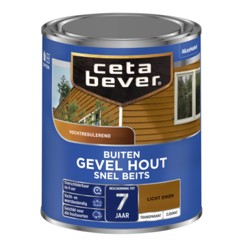 Wil je jouw buitenhout beschermen zonder dat het natuurlijke karakter verloren gaat? CetaBever Snelbeits Gevel & Kozijn zijdemat transparant eiken 750 ml is een watergedragen beits die speciaal is ontwikkeld voor zachthout en niet-maatvast houtwerk zoals gevelbetimmeringen en rabatdelen. De beits dringt diep in het hout en biedt een vocht- en weerbestendige bescherming tot wel zeven jaar. Dankzij de snelle droogtijd van vier uur kan je eenvoudig meerdere lagen aanbrengen op één dag. Verkrijgbaar in diverse kant-en-klare tinten én te mengen in elke gewenste transparante kleur. Zo creëer je altijd de perfecte uitstraling voor jouw project.
