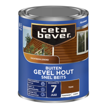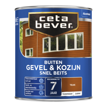 Wil je jouw buitenhout beschermen zonder dat het natuurlijke karakter verloren gaat? CetaBever Snelbeits Gevel & Kozijn zijdemat transparant teak 750 ml is een watergedragen beits die speciaal is ontwikkeld voor zachthout en niet-maatvast houtwerk zoals gevelbetimmeringen en rabatdelen. De beits dringt diep in het hout en biedt een vocht- en weerbestendige bescherming tot wel zeven jaar. Dankzij de snelle droogtijd van vier uur kan je eenvoudig meerdere lagen aanbrengen op één dag. Verkrijgbaar in diverse kant-en-klare tinten én te mengen in elke gewenste transparante kleur. Zo creëer je altijd de perfecte uitstraling voor jouw project.