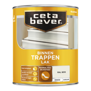 CetaBever Trappenlak dekkend is een watergedragen lak. Het beschermt en verzorgt uw hout en geeft uw hout een prachtige dekkende eindlaag. CetaBever Trappenlak is ook verkrijgbaar als transparante variant.