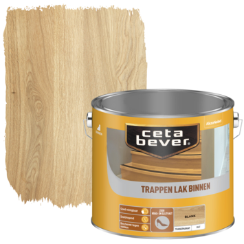 CetaBever Trappenlak transparant is een watergedragen lak verkrijgbaar in mat, zijdeglans en zijdeglans anti-slip. Het beschermt en verzorgt uw hout en geeft uw hout een prachtige kleurloze eindlaag waarbij de houtnerf zichtbaar blijft. CetaBever Trappenlak is ook verkrijgbaar als dekkende variant.