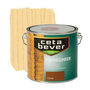 CetaBever Tuin impregneer teak 2,5 liter is een transparant, vochtregulerend impregneermiddel voor buiten. Dit is een uitstekende basislaag voor onder de transparante CetaBever beitsen, ter verhoging van de duurzaamheid. CetaBever impregneer is geschikt voor toepassing op kozijnen, gevelbetimmering, houten stacaravans, blokhutten, schuttingen en ander tuinhout. Het heeft een sterk impregnerende werking en is vochtregulerend waardoor het houtwerk optimaal wordt beschermd. Cetabever impregneer is niet alleen beschermend, maar ook sterk aankleurend waardoor het houtwerk ook mooier maakt. De inhoudsmaat is 2,5 liter.