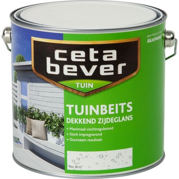 CetaBever tuinbeits dekkend RAL 9010 gebroken wit zijdeglans 2,5 liter is een zijdeglans, dekkende beits voor al het houtwerk buiten. Het heeft een sterk impregnerende werking waardoor het diep in het hout dringt en al het houtwerk in uw tuin optimaal beschermt tegen weersinvloeden. U kunt het zelfs aanbrengen op enigszins vochtig hout. CetaBever tuinbeits dekkend is vochtregulerend waardoor onder andere houtrot en bladdervorming wordt voorkomen. CetaBever tuinbeits is in verschillende dekkende en transparante kleuren leverbaar en is geschikt voor tuinmeubilair, schuren, schuttingen, steigers en vlonders. De inhoudsmaat is 2,5 liter.