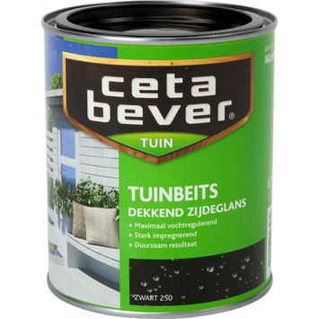 CetaBever tuinbeits dekkend zwart zijdeglans 750 ml is een zijdeglans, dekkende beits voor al het houtwerk buiten. Het heeft een sterk impregnerende werking waardoor het diep in het hout dringt en al het houtwerk in uw tuin optimaal beschermt tegen weersinvloeden. U kunt het zelfs aanbrengen op enigszins vochtig hout. CetaBever tuinbeits dekkend is vochtregulerend waardoor onder andere houtrot en bladdervorming wordt voorkomen. CetaBever tuinbeits is in verschillende dekkende en transparante kleuren leverbaar en is geschikt voor tuinmeubilair, schuren, schuttingen, steigers en vlonders. De inhoudsmaat is 750 ml.