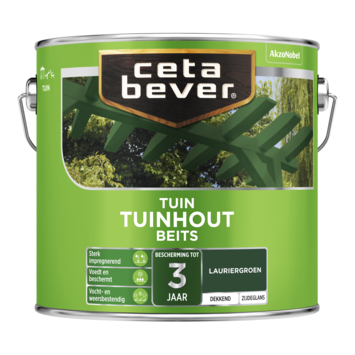 CetaBever Tuinhoutbeits zijdeglans dekkend lauriergroen 2,5 liter is een oplosmiddelhoudende tuinbeits, verkrijgbaar in diverse transparante en dekkende kleuren. Dekkende Tuinhoutbeits is te mengen in iedere gewenste kleur. Tuinhoutbeits is sterk impregnerend en voedt en beschermt je hout langdurig tegen weersinvloeden.