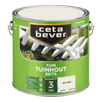 CetaBever Tuinhoutbeits dekkend RAL 9010 gebroken wit zijdeglans 2,5 liter is een oplosmiddelhoudende tuinbeits, verkrijgbaar in diverse transparante en dekkende kleuren. Dekkende Tuinhoutbeits is te mengen in iedere gewenste kleur. Tuinhoutbeits is sterk impregnerend en voedt en beschermt jouw hout langdurig tegen weersinvloeden.
