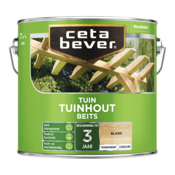 CetaBever Tuinhoutbeits zijdeglans transparant blank 2,5 liter heeft een sterk impregnerende werking is vochtregulerend, waterafstotend en beschermt het hout van binnen uit. Deze transparante tuinhoutbeits is uiterst geschikt voor bescherming van hard- en zachthouten pergola's, speeltoestellen en ander tuinhout zoals tuinmeubilair en schuttingen. Verkrijgbaar in diverse kant-en-klaar kleuren, maar ook beschikbaar in vele tinten op de mengmachine!