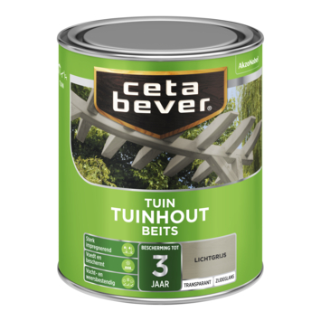 CetaBever Tuinhoutbeits zijdeglans transparant lichtgrijs 750 ml heeft een sterk impregnerende werking is vochtregulerend, waterafstotend en beschermt het hout van binnen uit. Deze transparante tuinhoutbeits is uiterst geschikt voor bescherming van hard- en zachthouten pergola's, speeltoestellen en ander tuinhout zoals tuinmeubilair en schuttingen. Verkrijgbaar in diverse kant-en-klaar kleuren, maar ook beschikbaar in vele tinten op de mengmachine!