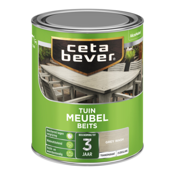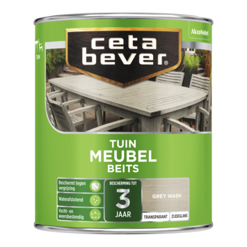 CetaBever Tuinmeubelbeits zijdeglans transparant grey wash 750 ml is een watergedragen tuinbeits, verkrijgbaar in diverse kleuren en te mengen in iedere gewenste transparante kleur. Tuinmeubelbeits is waterafstotend en beschermt jouw hout langdurig tegen weersinvloeden.