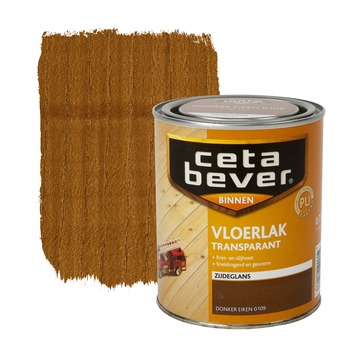 CetaBever vloerlak transparant donker eiken zijdeglans 750 ml is een transparante, zijdeglans, waterverdunbare vloerlak voor binnen. Het is een slijt- en kras vaste vloerlak die zeer geschikt is voor bescherming van je zacht- en hardhouten vloeren binnenshuis. CetaBever vloerlak transparant beschermt en verzorgt het hout en geeft het een prachtige transparante kleur waarbij de houtnerf zichtbaar blijft. Het is geurarm en snel droog. CetaBever vloerlak transparant heeft een mooie zijdeglans en is goed reinigbaar waardoor de vloer lang mooi blijft. De inhoudsmaat is 750 ml.