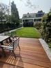 Schutting eerst ontdaan van spinnenwebben. Verder niet geschuurd. Opgebracht met vachtroller en kwasten. Staat er weer netjes bij