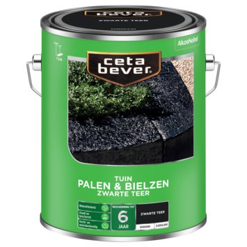 CetaBever Palen & Bielzen zwarte teer 5 liter is een terpentine verdunbare beits met een zijdeglans afwerking voor buiten. Het biedt tot 6 jaar bescherming en maakt hout waterafstotend en bestand tegen vocht en verschillende weersomstandigheden. Deze beits is geschikt als dekkend afwerking voor palen, bielzen en geïmpregneerde rolborders, zowel nieuw als eerder behandeld met carbolineum of zwarte teer.