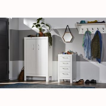 Berg je al je losliggende spullen op in de compacte Chicago ladenkast grenen wit 85x45x39 cm. Deze ladenkast is voorzien van maar liefst 4 handige lades waarin je jouw spullen overzichtelijk kunt bewaren. Deze lades kun je stabiel en solide open, maar ook weer dicht doen door middel van de metalen grepen. De kast heeft een afmeting van 85x45x39cm en is met de bijbehorende montage-handleiding makkelijk te monteren. Ladekast Chicago is vervaardigd uit massief grenen, waardoor het ladenblok tijdloos is en in nagenoeg ieder interieur of ruimte staat. Zet hem bijvoorbeeld naast jouw bureau, gebruik de ladenkast als nachtkast of creëer er extra opbergruimte mee in je (bij)keuken. Kortom: ladenkast Chicago is een aanwinst voor iedere woon- of werkruimte.
