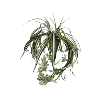 Klaar om zorgeloos te genieten? De kunstplanten van Mica Decorations zijn niet van echt te onderscheiden, maar hebben geen enkel onderhoud nodig. Deze (No Suggestions), ook wel bekend als graslelie, staat bekend om de lange, groene bladeren met witte strepen en de grote hoeveelheid stekjes. Deze kunstvariant is tot in detail nagemaakt! De plant is al gemodelleerd en stevig verankerd in een terracotta bloempot met basalt grijze pigmenten. Na aankoop kan hij dus direct worden neergezet, of plaats hem nog in een sierlijke overpot. Combineer de Chlorophytum met andere kunstplanten en -bloemen uit de collectie en breng meer groen in huis. De afmetingen zijn H45 x Ø45 cm.