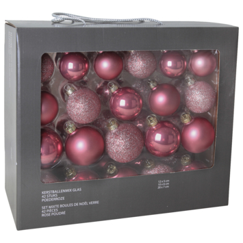 Christmas Goods kerstballen mix glas 42 stuks poederroze