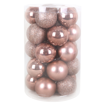 De Christmas Goods kerstballen mix kunststof 25 stuks donkerroze is ideaal voor het versieren van je kerstboom met een moderne en warme kleur. De set bevat 25 kunststof ballen in verschillende afwerkingen, waardoor je eenvoudig variatie aanbrengt zonder af te wijken van dezelfde kleurtint. Het kunststof materiaal is licht van gewicht en breekt niet, waardoor de ballen geschikt zijn voor huishoudens met kinderen of huisdieren. Geschikt voor binnengebruik en handig te combineren met andere kerstdecoratie in goud, wit of pastelkleuren.