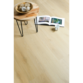Voor het leggen van de Click PVC Navina rechte stroken licht eiken houtlook is de voorbereiding eenvoudig. Deze vloer kan rechtstreeks op een bestaande harde vloer worden gelegd, zoals beton of tegels. Het is belangrijk dat de ondergrond droog, vlak, hard en vrij van scherpe oneffenheden is. Laat de planken 48 uur acclimatiseren in de ruimte waar je ze wilt leggen. Deze acclimatisatie zorgt ervoor dat de planken zich aanpassen aan de temperatuur en luchtvochtigheid. Door de klikverbinding is het leggen van de vloer ook geschikt voor de doe-het-zelver.