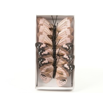 De clip vlinder roze/zwart in box 6 stuks is een leuke accessoire voor in de kerstboom of elders in uw interieur. De vlinders zijn verkrijgbaar in wit/ zwart of roze/zwart en zijn per 6 stuks verpakt. Dit artikel is alleen verkrijgbaar in de bouwmarkten.