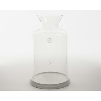 Deze Cloche van glas met snoergat is een veelzijdige accessoire in uw huis. De stolp heeft een MDF bord met daarop de glazen cloche. De cloche is voorzien van een snoergat, waardoor u er ideaal verlichting in kunt doen. De Cloche Glas met snoergat heeft een diameter van 18cm en is 28 cm hoog. Dit artikel is alleen verkrijgbaar in de bouwmarkten.
