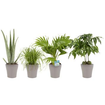 Met deze planten Combibox breng je een zeer diverse selectie aan kamerplanten je woning in. De planten komen met een prachtige matwitte bloempot met een potmaat van 12 cm. Deze combibox bestaat uit een Aloë Vera met een hoogte van 25 cm, een Australische Kastanje met een hoogte van 30 cm, een Waaierpalm met een hoogte van 30 cm en Kattengras met een hoogte van 23 cm. De inbegrepen bloempotten zijn gemaakt van hoogwaardig keramiek en hebben allen een tijdloos design. Je kunt deze potten dus in werkelijk ieder interieur gebruiken en ze zijn verkrijgbaar in wit, grijs en antraciet. Ook zijn de potten volledig waterdicht. Je loopt dus geen risico wanneer je deze op een houten tafel zet, met naast de pot gieten als uitzondering natuurlijk. Je kunt deze 4 planten op verschillende manieren neerzetten. Zet ze allemaal bij elkaar en maak er een prachtig groen hoekje van, maar je kunt ze natuurlijk ook verspreiden!