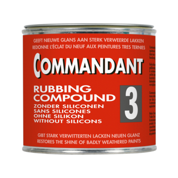 De Commandant Rubbing Compound nr.3 is een krachtig en grof polijstmiddel voor sterk verweerde autolakken. Met het middel verwijdert u handmatig spuitnevel, aanslag en roest van uw auto. Hierdoor krijgt slecht onderhouden of verweerde lak weer nieuwe glans. De Commandant Rubbing Compound nr.3 is vrij van siliconen en oplosmiddel. Met de polijstcleaner polijst u ook kleine blikreparaties, zodat deze weer gaan glanzen. Kortom, met de krachtige Commandant Rubbing Compound nr.3 maakt u sterk verweerde autolakken weer als nieuw.