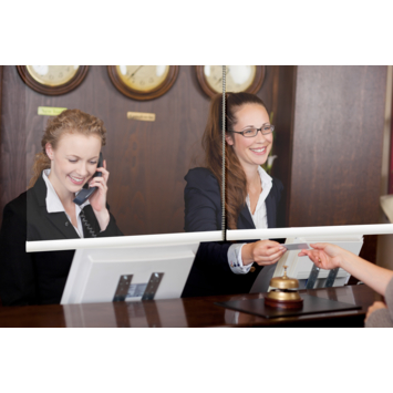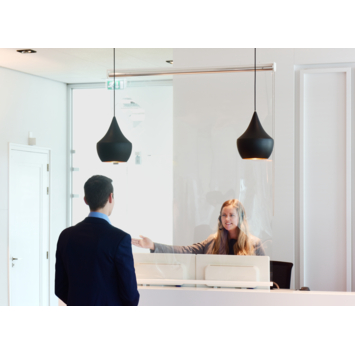 Zowel visueel als akoestisch is het Corona Protectiescherm aantrekkelijk en heeft het een moderne uitstraling. Een goed alternatief voor plexiglas of perspex schermen.