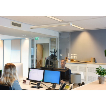 Het corona protectiescherm is een flexibele en decoratieve oplossing voor bescherming van de werkplek. Gemakkelijk te monteren op verschillende plafond types, ook geschikt voor systeemplafond: zowel direct tegen het plafond te plaatsen of hangend aan een kabel. Hiervoor worden verschillende bevestigingsmaterialen standaard meegeleverd. Het Protectiescherm is zeer gebruikersvriendelijk en eenvoudig te monteren.