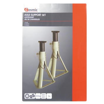 Met behulp van de Cosmic assteunset 2000kg kunt u uw auto ondersteunen nadat u deze heeft opgekrikt. Zo voert u stukken eenvoudiger schoonmaak- of reparatiewerkzaamheden uit. De Cosmic assteunset 2000kg is verstelbaar in de volgende hoogtes: 290mm, 340mm en 390mm. De maximale belasting van de steunen is 2000kg. De stevige assteunen zijn zodanig ontworpen dat ze niet alleen erg sterk en solide zijn, maar ook robuust en stabiel. Het enige dat u hoeft te doen is het opkrikken van uw auto. Zet vervolgens de assteunen eronder op de door u gewenste hoogte. Met de Cosmic assteunset 2000kg, die per 2 worden geleverd, werkt u altijd veilig.