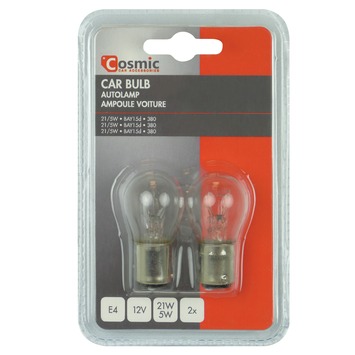 Met de Cosmic autolamp 21/5W BAY15-d 2 stuks in uw auto zorgt u dat andere deelnemers in het verkeer u op tijd kunnen opmerken. U bent wettelijk verplicht om goede verlichting op uw auto te voeren. De Cosmic autolamp 21/5W BAY15-d 2 stuks wordt vaak gebruikt voor dagrijverlichting, zij- en bermverlichting, achterverlichting en remverlichting achter. Is een van deze lampen aan vervanging toe? Vervang dan zelf de kapotte lamp. De autolampen worden als set van 2 stuks geleverd. Met de Cosmic autolamp 21/5W BAY15-d 2 stuks zorgt u er overigens niet alleen voor dat u gezien wordt, ook zorgen de autolampen ervoor dat u zelf een goed zicht heeft.
