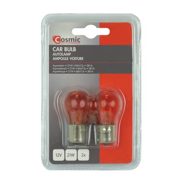 Met de set Cosmic autolamp 21W BAU15s oranje 2 stuks in uw auto zorgt u ervoor dat overige deelnemers aan het verkeer u op tijd kunnen opmerken. U bent wettelijk verplicht om goede verlichting op uw auto te voeren. De Cosmic autolamp 21W BAU15s oranje 2 stuks wordt vaak gebruikt voor de richtingaanwijzers, zowel voor als achter. Is een van deze lampen aan vervanging toe? Vervang dan zelf de kapotte autolamp. In de set vindt u 2 PY21W BAU15s lampen. Kortom, met de Cosmic autolamp 21W BAU15s oranje 2 stuks zorgt u ervoor dat u gezien wordt als u van richting verandert.
