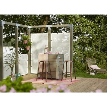 Succes verzekerd met het Cubic pergola systeem. Maak eenvoudig een constructie door gebruik te maken van houten palen en de bijbehorende Cubic verbindingselementen. Kies vervolgens één of meerdere Cubic schermen om het geheel stijlvol mee te voltooien. Met dit handige windscherm zit je niet alleen comfortabel uit de wind, maar heb je ook enige bescherming tegen de zon. Dit windscherm heeft een afmeting van 180 bij 180 cm en wordt geleverd in de kleur wit. Het geheel wordt geleverd inclusief 4 stuks bevestigingsmateriaal.