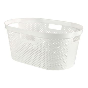 Het versjouwen van je vuile of schone was doe je voortaan met deze Curver Wasmand Infinity Dots Wit 40 Liter. De opengewerkte structuur van deze wasmand zorgt ervoor dat je vuile was genoeg lucht krijgt en niet blijft of gaat stinken. Door het kunststoffen materiaal is deze wasmand eenvoudig schoon te maken en goed geschikt voor in vochtige ruimtes. Dankzij de comfortabele handgrepen verplaats je de wasbox in een mum van tijd naar een ander deel van je huis. GAMMA heeft ook bijpassende Infinity Dots-wasboxen in zijn assortiment. Kortom: een moderne wasmand die past in iedere badkamer.