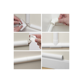 10 slimme accessoires voor kabelgoot 20x10mm Wit 1x vlakke buigclip over - Verander de richting 90º op vlakke oppervlakken. 2x Interne buigclip - Verbindingslengtes rond 90º in de binnenhoeken 2x Externe buigclip over - verbindingslengtes rond 90° buitenhoeken 1x Gelijke T-clip over - Gebruik deze om 3 lengtes van hetzelfde profiel te verbinden. 2x Coupler Smooth Fit - Verbind 2 lengtes van hetzelfde profiel op een vlakke ondergrond. 2x Eindkap Vlotte pasvorm - Maak open uiteinden netjes glad.