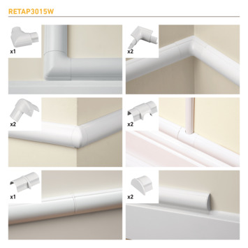 De D-Line accessoireskit t.b.v. 30/15mm D-line goot wit bestaat uit diverse (hoek-)verbindingsstukken om uw elektriciteitskabels en snoeren netjes weg te werken. De set kunt u gebruiken in combinatie met de D-line 30x15mm kabelgoten.