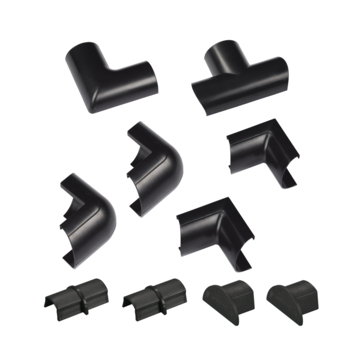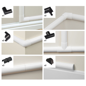 Multipack accessoires met verschillende bochten, connectoren en eindstukken voor het aansluiten van kabellijsten. Werk alle kabels mooi weg met deze eenvoudig aan te sluiten hulpstukken. Kan overschilderd worden.