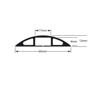 EU/CC-2 D-Line kabelgoot voor de vloer. De kabelbeschermer voor de vloer creëert gemakkelijk orde van kabels en beschermt kabels tegen breuk en voorkomt het risico van struikelen, thuis of op kantoor. Bedekt kabels op de vloer thuis of op kantoor in ruimtes die regelmatig worden gebruikt. Het kan ook worden gebruikt voor beurzen en evenementen. Het afgeschuinde ontwerp is bijzonder geschikt voor voetgangers. De D-Line CC-2 kabelbrug heeft een interne holte van 17x 9mm en biedt plaats aan maximaal twee 8mm kabels. De geribde basis en gespleten achterkant maken het gemakkelijk te gebruiken, omdat de kabels kunnen zeer gemakkelijk worden ingevoegd. • Ideaal voor licht voetverkeer • Pakt een veel voorkomende oorzaak van reizen, sleepboten en vallen • Kan kabels met een diameter tot 2x 8 mm beschermen • Geribbelde antislipbasis, en gespleten onderkant • Flexibel PVC – opgerold geleverd Flexibel uit te rollen en ligt direct plat, geen tape nodig • Volledig getest en gecertificeerd voor BS EN 60670-1:2005