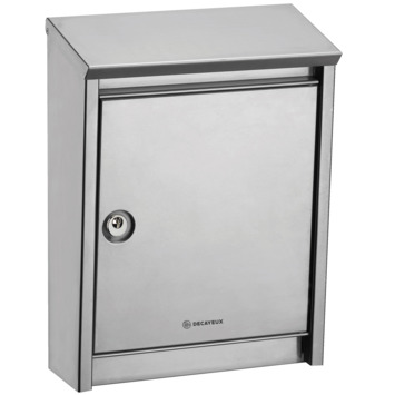 De Decayeux D110 is gemaakt van hoogwaardig plaatstaal met een coating. Inwerpopening van deze brievenbus zit aan de bovenzijde en is voorzien van een regendichte klep. Ook geschikt voor grotere poststukken zoals een postordercatalogus. Met het cilinderslot en de 2 gecodeerde sleutels is de Decayeux D110 brievenbus te openen. Geschikt voor bevestiging aan een muur of op een paal.