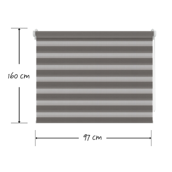 Het Decosol duo rolgordijn lichtdoorlatend t.b.v. draaikiepraam antraciet (kleurnr. 4309) 97x160 cm (totale breedte incl. bevestiging is 100 cm) is ideaal voor (kunststof) draaikiepramen. D.m.v. klemsteunen bevestig je het duo rolgordijn op je raam. Speciale spandraden zijn los verkrijgbaar, zodat het duo rolgordijn ook in de kiepstand tegen je raam blijft hangen. Een duo rolgordijn bestaat uit twee lagen stof, met afwisselend transparante en gekleurde banen. D.m.v. een ketting is het duo rolgordijn eenvoudig te bedienen. Door de 2 stoflagen langs elkaar te schuiven kan er worden gespeeld met mate van lichtinval en inkijk. Als het duo rolgordijn half open is, zorgt dat voor een mooi gefilterde lichtinval. Als het duo rolgordijn volledig gesloten is, heb je maximale privacy en lichtwering, máár de stof verduistert niet. Een duo rolgordijn neemt weinig ruimte in beslag en past in elk interieur.