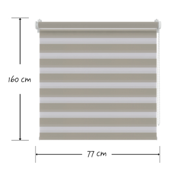 Het Decosol duo rolgordijn lichtdoorlatend t.b.v. draaikiepraam grijs (kleurnr. 4313) 77x160 cm (totale breedte incl. bevestiging is 80 cm) is ideaal voor (kunststof) draaikiepramen. D.m.v. klemsteunen bevestig je het duo rolgordijn op je raam. Speciale spandraden zijn los verkrijgbaar, zodat het duo rolgordijn ook in de kiepstand tegen je raam blijft hangen. Een duo rolgordijn bestaat uit twee lagen stof, met afwisselend transparante en gekleurde banen. D.m.v. een ketting is het duo rolgordijn eenvoudig te bedienen. Door de 2 stoflagen langs elkaar te schuiven kan er worden gespeeld met mate van lichtinval en inkijk. Als het duo rolgordijn half open is, zorgt dat voor een mooi gefilterde lichtinval. Als het duo rolgordijn volledig gesloten is, heb je maximale privacy en lichtwering, máár de stof verduistert niet. Een duo rolgordijn neemt weinig ruimte in beslag en past in elk interieur.