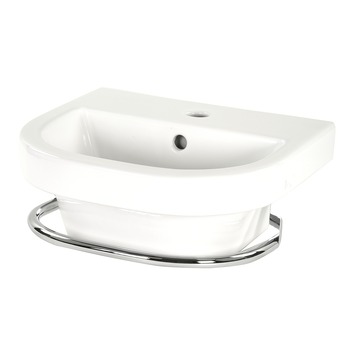 Deze wastafel komt uit de serie Delta Amo van het merk Bruynzeel. De compacte wastafel is gemaakt van wit keramiek en heeft een kenmerkende moderne vorm. De wastafel is voorzien van een praktische handdoekrail die om de wasbak heen loopt. De totale lengte van de rail is 40cm: plek genoeg dus om een paar handdoeken op te hangen. De wasbak is vrij diep. De precieze afmetingen van de wastafel zijn 45,4cm bij 41,5cm en 22,8cm. De wastafel is voorzien van een overloopgat en wordt geleverd zonder kraan, sifon en bodemventiel. Bevestigingsmateriaal is wel inbegrepen.