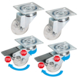Set van 4 meubelwielen met bevestigingsplaat, maximum draagkracht 30 kg per wiel. Deze set zwenkwielen is geschikt voor montage onder je eettafel, audiomeubel, salontafel. Deze wielen zijn geschikt voor op tapijt, PVC, tegels, houten vloeren en laminaat. In de verpakking zitten 2 zwenkwielen en 2 zwenkwielen met rem.