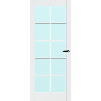 Deze Lundia binnendeur wordt geleverd inclusief blank glas. De deur is voorzien van een slotgat.