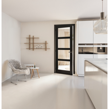 Dit model sluit qua stijl goed aan bij deur Niek, zodat je eenvoudig meerdere binnendeuren op elkaar kunt afstemmen. Door de combinatie van glas en een strak zwart kader past de deur in uiteenlopende woonstijlen, zoals modern, Scandinavisch en minimalistisch.