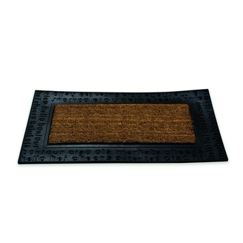 De deurmat Ruco international 45x75cm is een schoonloopmat met een perfect schrapende werking. De mat is gemaakt van design rubber en heeft een kokos inlay, waarmee u uw woning van een exotische look voorziet. Dankzij de neutrale kleurstelling past de mat in ieder interieur. De mat heeft een perfect schrapende werking, waardoor vuil achterblijft op de mat en de vloeren van uw woning schoon blijven. Afmeting: 45x75cm.