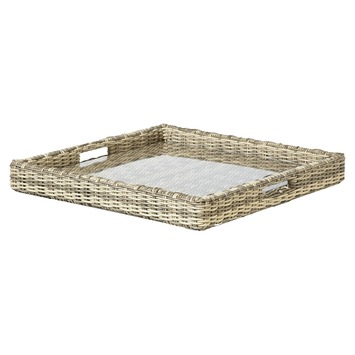 Het dienblad Granada is een te gebruiken voor de sier en als functioneel dienblad. Het dienblad is gemaakt van bruin Wicker en transparant acryl blad, waardoor deze een warme uitstraling heeft. Het dienblad heeft afmetingen van 72x72x11cm waardoor het een groot dienblad is. Kortom, het dienblad Granada is perfect te gebruik voor decoratie als met de daadwerkelijke functie die een dienblad heeft.