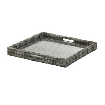 Het bijbehorende dienblad Trentino maakt de loungeset Trentino compleet. De hard plastic plaat zorgt voor een stevig 'tafelblad'. Het geweven kunstig wat eronder zit gaat wel naar het frame staan. Zakt wat in over het gekruiste frame. Vond ik eerst jammer toen ik dit ontdekte maar stoor me er nu al minder aan.