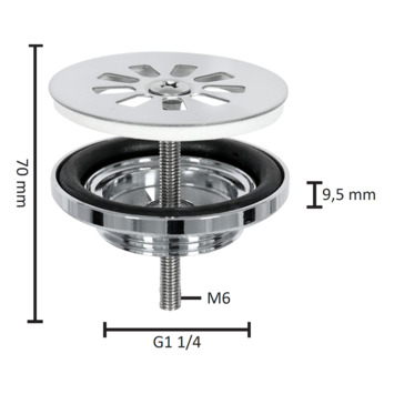 Breng je fonteinset in je toiletruimte in één stijl met de afvoerpluggen van Differnz! De fonteinplug monteer je eenvoudig. De Differnz afvoerplug voor fontein Chroom heeft een diameter van 65 mm een hoogte van 70 mm en het schroefdraad heeft de maat M6. De afdichtingsringen voorkomen dat er lekkages ontstaan. Het messing materiaal heeft een glanzend chromen afwerking.