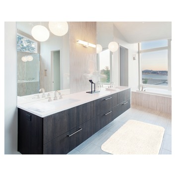 Met de Differnz Badmat Altera 60x90 cm Gebroken Wit stap je vanuit je bad of douche niet meer op de koude badkamervloer. Bovendien glijd je minder makkelijk uit, vanwege de antislip werking van de mat. De badmat is gemaakt van polyester, wat vocht niet lang vasthoudt. Zo stap je altijd op een droog aanvoelende mat. Ook handig is dat je de mat in de wasmachine kan wassen. De badmat is rechthoekig met afgeronde hoeken in maat 60x60 cm, en met een laagpolige wollige structuur uitgevoerd. Met de kleur gebroken wit past deze badmat in elk badkamerinterieur! In deze uitvoering is ook een bijpassende WC mat verkrijgbaar.