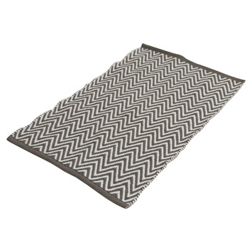 Met de Differnz Badmat Devon Grijs Wit 50x80 cm stap je vanuit je bad of douche niet meer op de koude badkamervloer. Bovendien glijd je minder makkelijk uit, vanwege de antislip werking van de mat. De badmat is gemaakt van katoen wat natuurlijk aanvoelt aan je voeten. Ook handig is dat je de mat in de wasmachine kan wassen. De badmat is rechthoekig met maat 50x80 cm in een geweven uitvoering. Met het grijs witte V-motief patroon past deze badmat in elk retro badkamerinterieur!